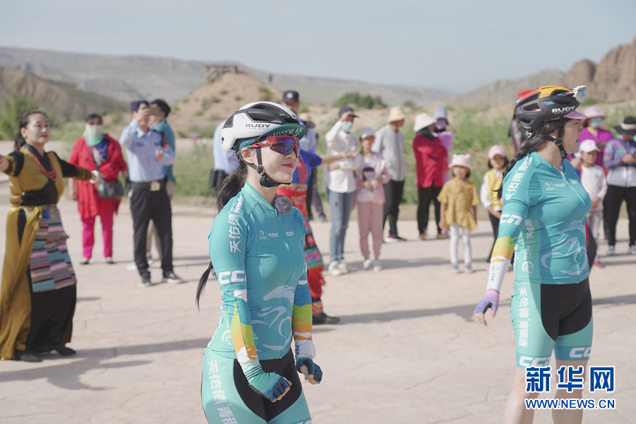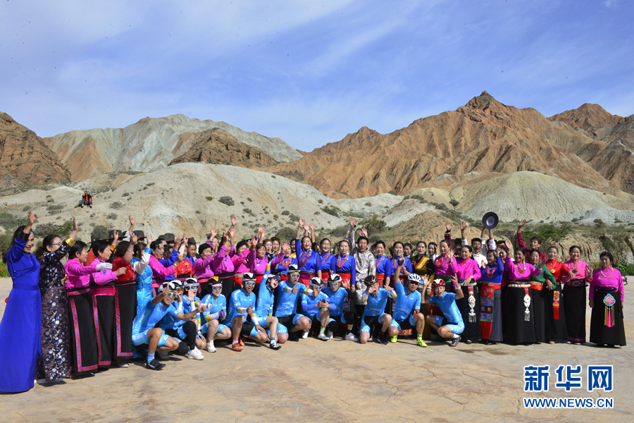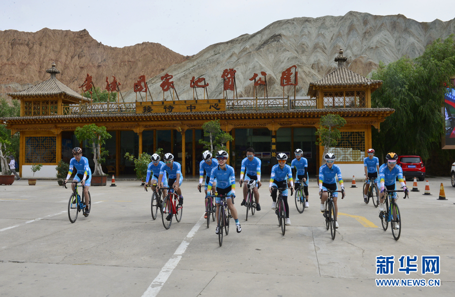 圖為“挑戰(zhàn)2020”環(huán)湖精英行“網(wǎng)紅”團隊在貴德國家地質公園準備騎行。新華網(wǎng) 魚昊 攝