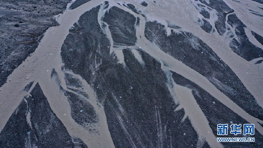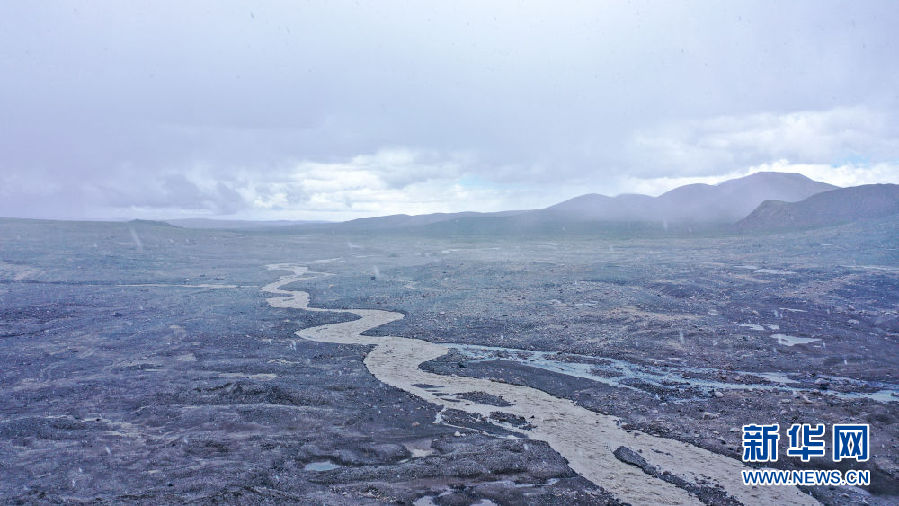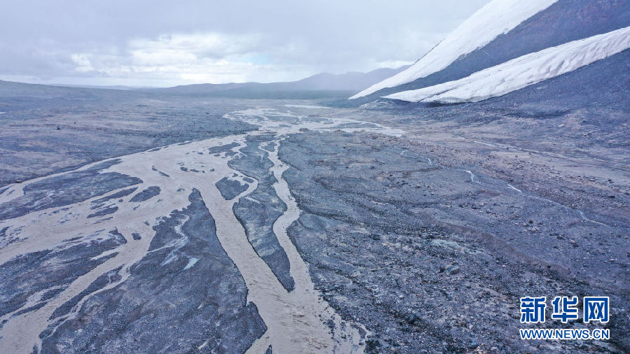 這是8月15日拍攝的崗加曲巴冰川融水形成的尕爾曲(無(wú)人機(jī)照片)。新華社記者 吳剛 攝