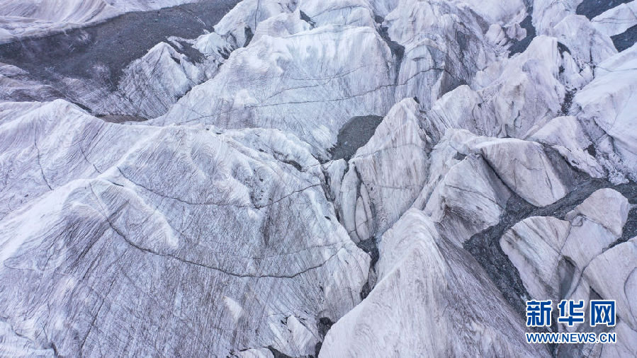 位于青海省玉樹藏族自治州的崗加曲巴冰川,坐落于長(zhǎng)江源園區(qū)的各拉丹冬雪山東坡,從空中俯瞰,層疊的冰塔顯得尤為壯觀。
