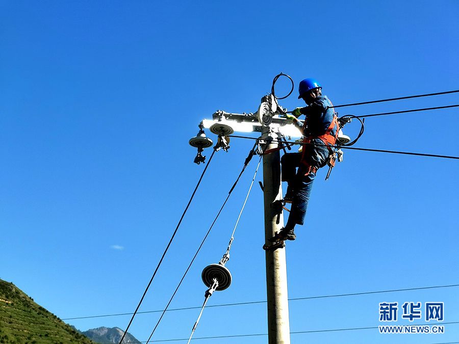 9月2日,電力工人正在搶修舟曲縣曲告納鎮(zhèn)的供電線路。新華網發(fā)(張靜 攝)