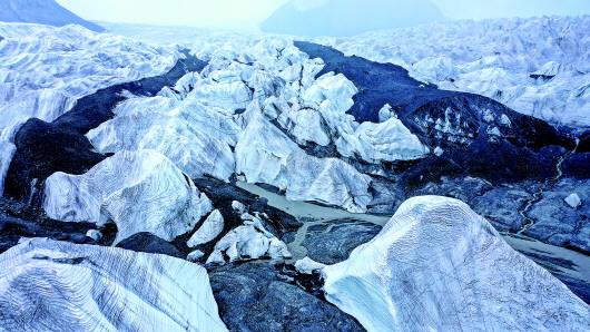 這是8月15日拍攝的崗加曲巴冰川(無(wú)人機(jī)照片)。吳剛 攝