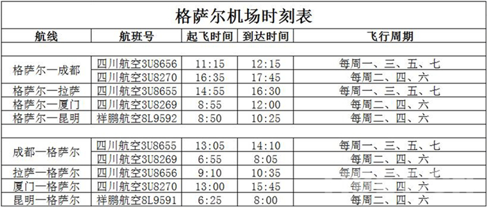 此次開通的新航線班期計(jì)劃為每周二、四、六三班,機(jī)型為波音737,上午6時(shí)28分從昆明長水機(jī)場(chǎng)起飛,8時(shí)整抵達(dá)甘孜格薩爾機(jī)場(chǎng);上午8時(shí)50分從甘孜格薩爾機(jī)場(chǎng)返航,10時(shí)25分抵達(dá)昆明,中途飛行時(shí)間僅需1個(gè)半小時(shí)。開航初期,川航推出了該航班的優(yōu)惠機(jī)票。