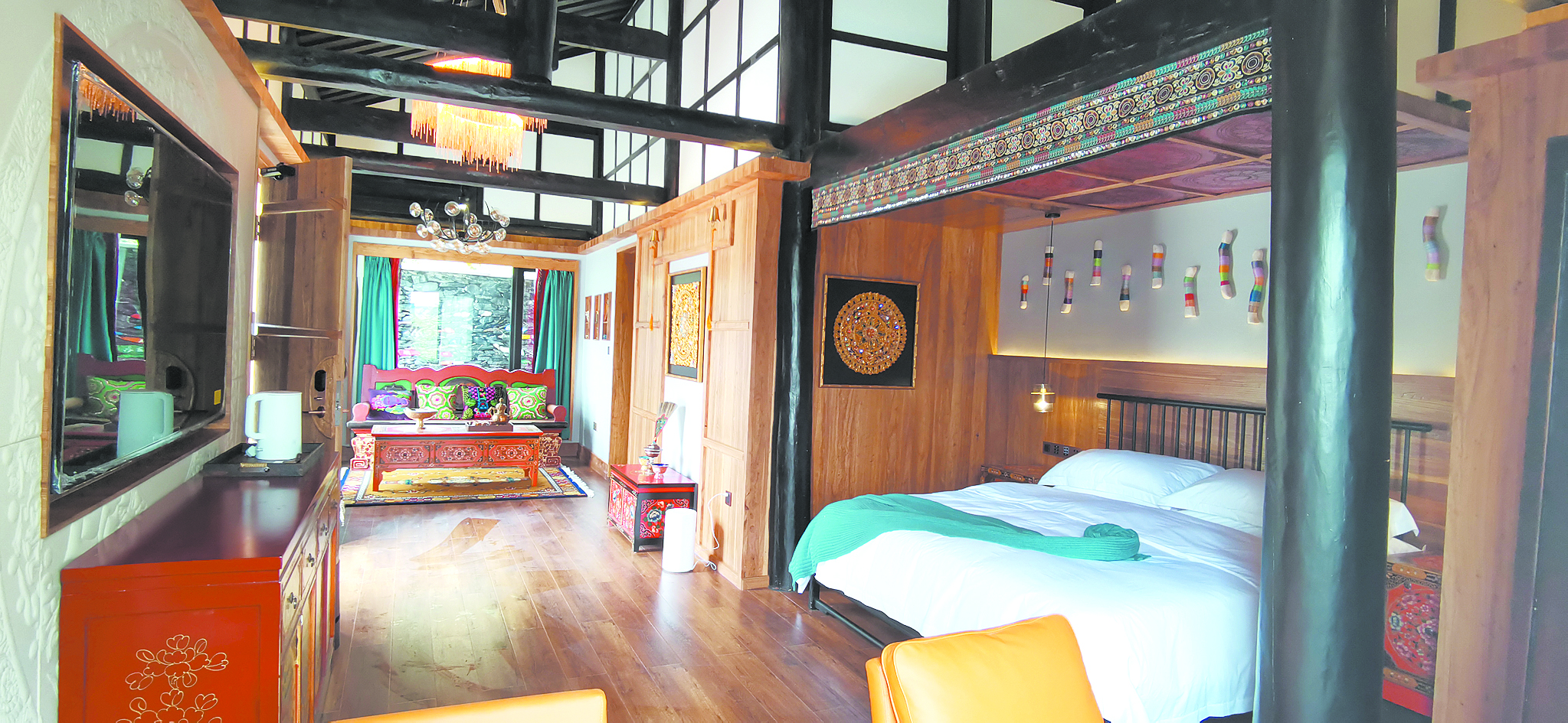 新藏寨帶來的可遠(yuǎn)不僅僅是改造了一座新居,印小言向記者介紹了這座新居對于村民和這個(gè)村意味著什么?——針對每棟參與的民居,邛崍市有美堂文化旅游投資有限公司投入100多萬改造老屋,簽訂15年租用協(xié)議,每年付給村民4萬租金,每戶村民還能有一人在酒店務(wù)工,并且每年?duì)I業(yè)額的5%返哺村集體經(jīng)濟(jì),首先打造樣板房,不滿意可以隨時(shí)退出。