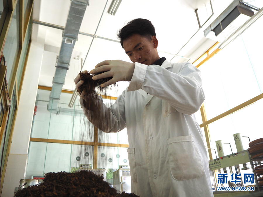 班瑪縣藏雪茶產業(yè)開發(fā)有限責任公司工作人員在晾曬藏雪茶。(資料圖)新華社記者 白瑪央措 攝