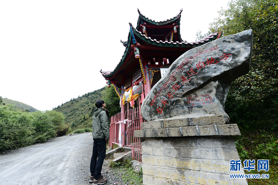 一位游客在瑪可河林場內的紅軍溝駐足參觀。(資料圖)新華社記者吳剛攝