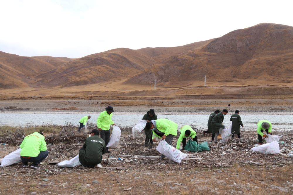 高原冬日,青海省玉樹藏族自治州治多縣多彩鄉(xiāng)境內(nèi),遠(yuǎn)處巍峨的雪山腳下,廣袤的草原早已褪去青色,許多綠色的身影活躍在草地上,一個(gè)個(gè)遺棄的塑料瓶、食品袋被他們撿起,寂靜的草原變得生動(dòng)起來(lái)。