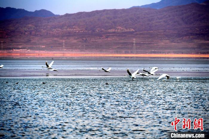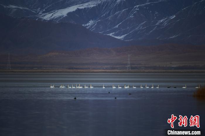 大天鵝飛抵柴達木盆地都蘭湖國家濕地公園“越冬”