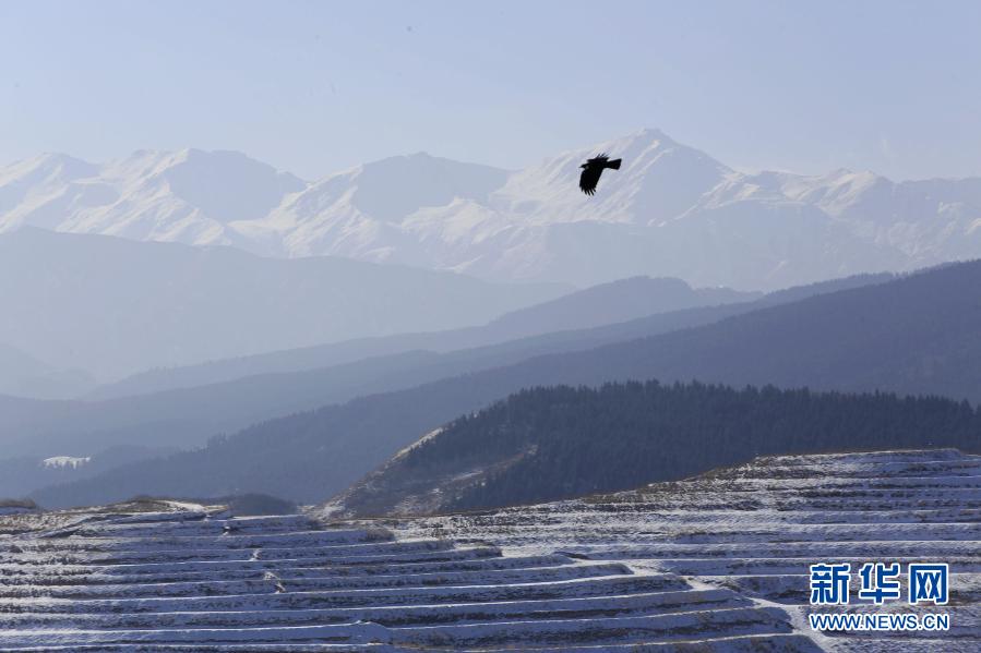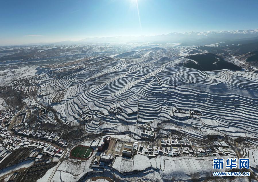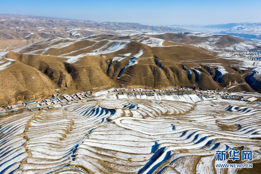 12月7日拍攝的甘肅天祝藏族自治縣大紅溝鎮(zhèn)的梯田雪景(無人機(jī)照片)。新華社 姜愛平 攝