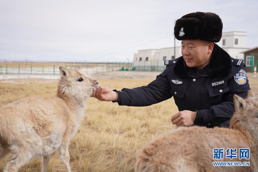 12月7日,可可西里巡山隊(duì)員達(dá)才在給藏羚羊幼仔喂奶。新華社記者 藍(lán)翔 攝