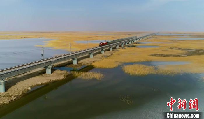 列車(chē)經(jīng)過(guò)臺(tái)特瑪湖特大橋。若羌縣融媒體中心供圖