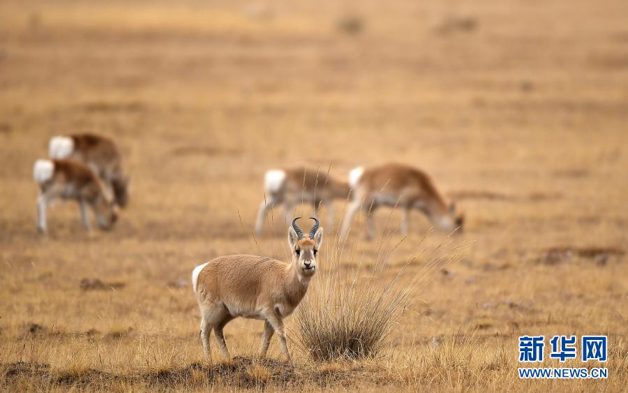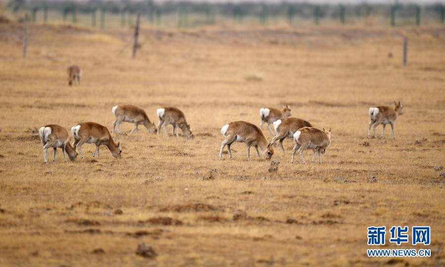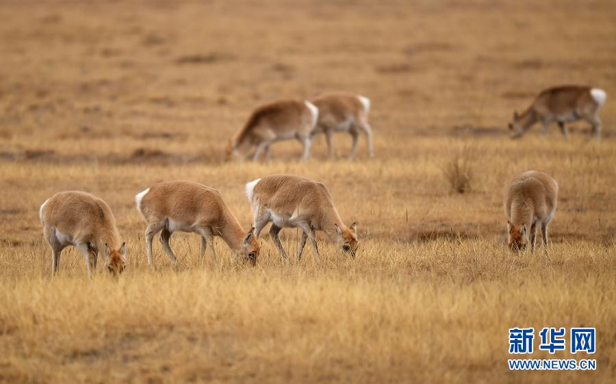 12月17日在青海海北剛察縣哈爾蓋鎮(zhèn)的草原上拍攝的普氏原羚。新華社記者 張宏祥 攝