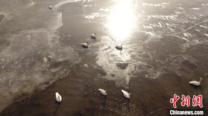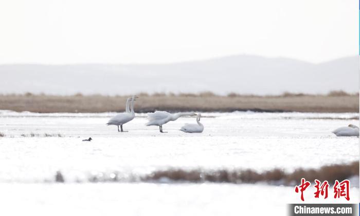 白天鵝飛抵若爾蓋棲息越冬。鄧政琪 攝