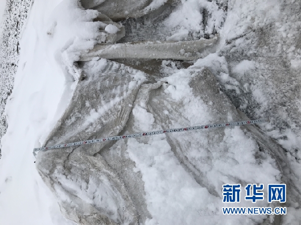 王飛騰團(tuán)隊(duì)發(fā)現(xiàn),“蓋被子”區(qū)域的冰體消融速度減緩。“‘蓋被子’的地方比不‘蓋被子’的地方冰的厚度高了一米,這高出來的一米就是‘蓋被子’的效果?!蓖躏w騰介紹。