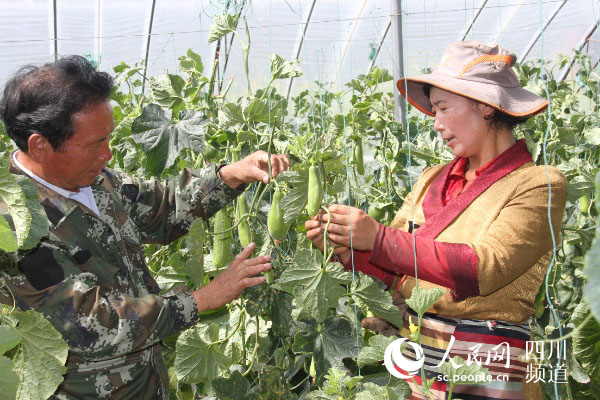 “你們要把瓜葉分叉中長(zhǎng)出的小瓜叉去掉,這樣就能減少瓜養(yǎng)分的消耗,長(zhǎng)出的西瓜才能又大又甜?!币晃簧綎|漢子在蔬菜大棚里向當(dāng)?shù)氐霓r(nóng)牧民傳授種植西瓜的心得。2016年10月,理塘縣引進(jìn)瑪吉阿米農(nóng)業(yè)開(kāi)發(fā)有限公司,修建58個(gè)現(xiàn)代化標(biāo)準(zhǔn)大棚,并從山東引進(jìn)了溫帶瓜果蔬菜的現(xiàn)代化種植技術(shù)。
