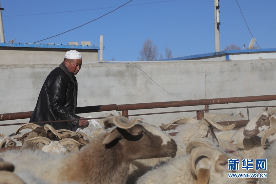 青海省海南藏族自治州共和縣興隆肉羊養(yǎng)殖專業(yè)合作社負責人馬生海在喂羊(1月28日攝)。新華社記者 趙玉和 攝