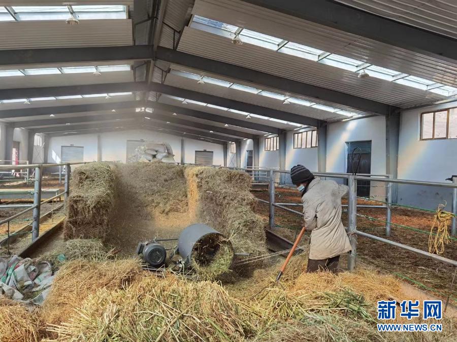 “飼草料是我自己種的,去年從鄉(xiāng)里領回草種,六月種十月收,裝滿了一百多個編織袋,為預防雪災做準備?!笨〞哉f。