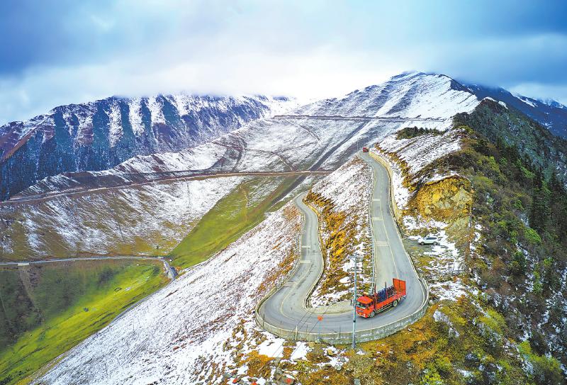 車輛沿著蜿蜒的山路前行,不一會兒,眼前已是白雪皚皚。60多公里路程走了近2個(gè)小時(shí),記者來到位于夾金山下的藏寨——磽磧,再往前就是紅軍長征翻越夾金山紀(jì)念地。