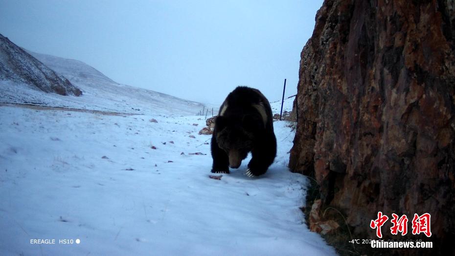 圖為相機抓拍到的棕熊活動畫面。 青海原上草自然保護中心供圖