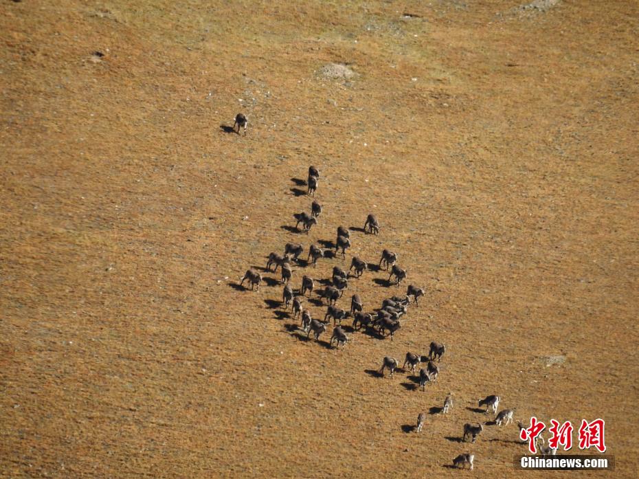 位于青海省南部的三江源區(qū)域,包括長江源(可可西里)、黃河源、瀾滄江源,是青藏高原生態(tài)系統(tǒng)的典型代表,分布雪豹、藏羚羊、野牦牛、黑頸鶴等珍稀物種,被稱“高原野生動物王國”、“高寒生物種質資源庫”。圖為巖羊群。曲麻萊管理處 供圖