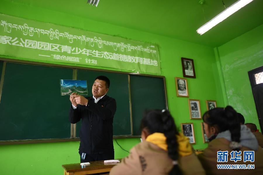 3月23日,青海省玉樹藏族自治州治多縣吉尕小學舉行一場特殊的生態(tài)課,邀請“環(huán)保衛(wèi)士”杰?!に髂线_杰之子索南旦正為學生授課。自2015年起,治多縣以杰桑·索南達杰精神為主線,通過主題班會、生態(tài)課堂、櫥窗宣傳等方式在全縣校園內(nèi)開展生態(tài)教育活動。2018年,治多縣在吉尕小學設立三江源國家公園園區(qū)青少年生態(tài)道德教育基地,培養(yǎng)學生樹立“環(huán)保從我做起”的意識。截至目前,生態(tài)課堂已覆蓋治多縣10所中小學近5000名學生。