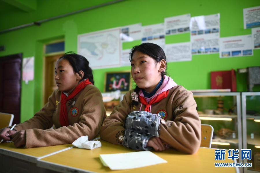 3月23日,吉尕小學學生達葉(右)在生態(tài)課堂上。新華社記者 張宏祥 攝