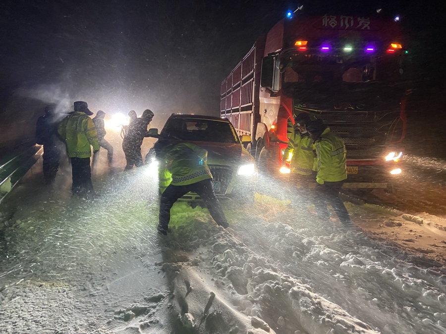 青?,敹啻笱┲露嘬?chē)被困 -30℃交警緊急救援