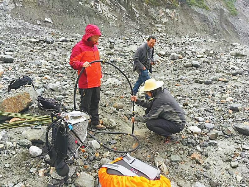 劉巧(左)在海螺溝冰川工作。