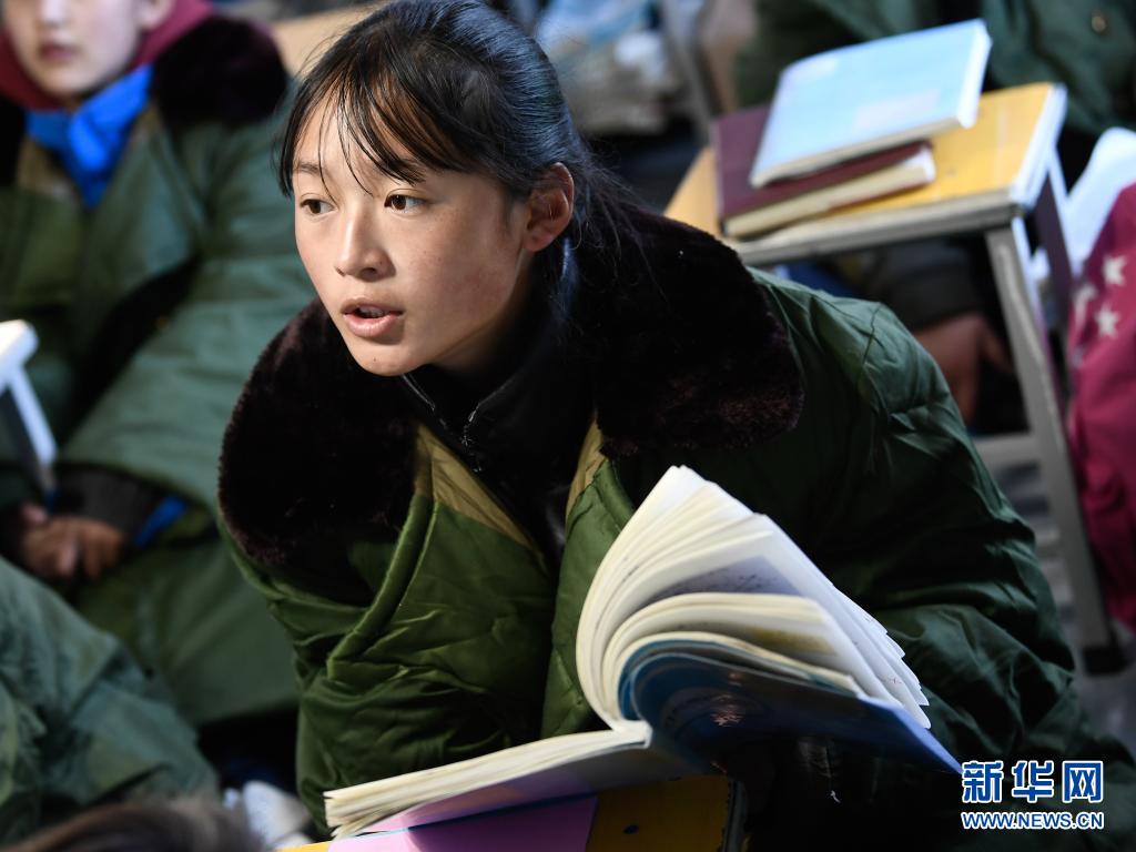 5月24日,曲邁卓瑪在瑪多縣民族寄宿制中學(xué)帳篷教室里讀書。新華社記者 張龍 攝