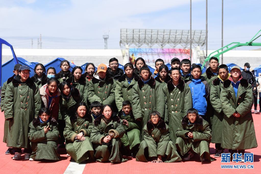 5月24日,曲邁卓瑪與同學(xué)們?cè)诂敹嗫h民族寄宿制中學(xué)合影。新華社記者 張龍 攝