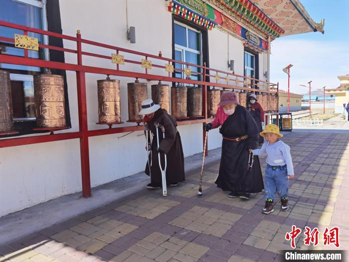 上午十點(diǎn),長江源頭的青海玉樹治多縣幸福敬老院內(nèi),陽光靜靜普照小廣場,金色轉(zhuǎn)經(jīng)筒邊身著藏袍的老人彎腰拄拐,牽著吃糖的孩子悠悠踱步,遠(yuǎn)處皚皚雪山起伏。