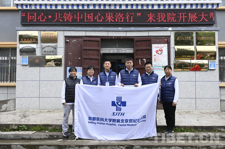 圖為首都醫(yī)科大學(xué)附屬北京世紀(jì)壇醫(yī)院醫(yī)生在班瑪縣人民醫(yī)院合影 (組委會供圖)