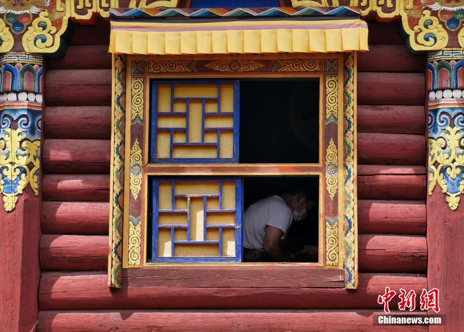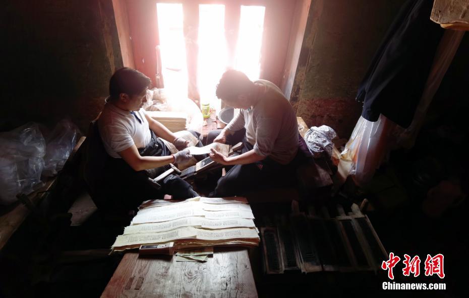 7月20日,四川德格,印經(jīng)院印刷工人進(jìn)行雕版印刷。中新社記者 劉忠俊 攝