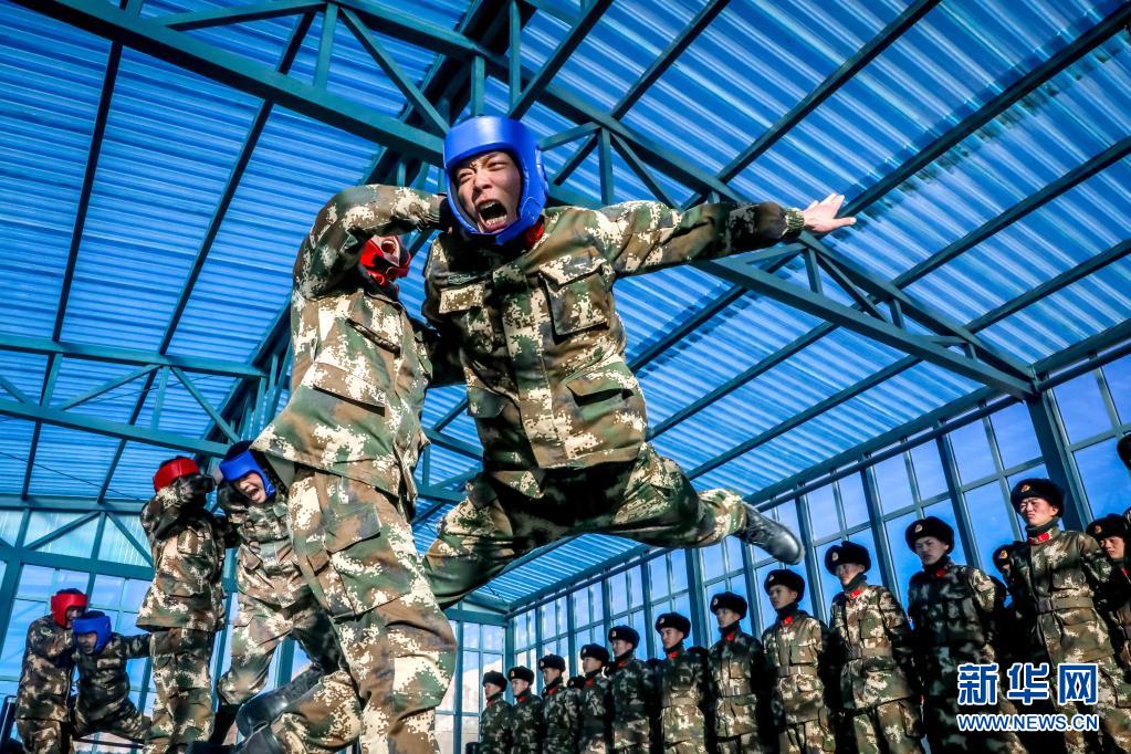 武警青海總隊(duì)執(zhí)勤支隊(duì)執(zhí)勤七中隊(duì)官兵在訓(xùn)練館訓(xùn)練(2月1日攝)。新華社 楊浩 攝