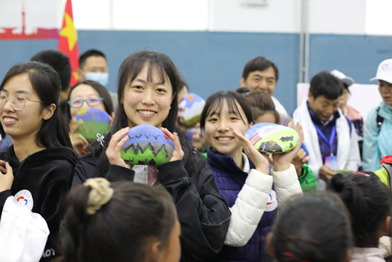 活動(dòng)現(xiàn)場(chǎng),福利學(xué)校的孩子們將親手制作的石頭畫(huà)送給成長(zhǎng)營(yíng)的小老師們。受訪者供圖
