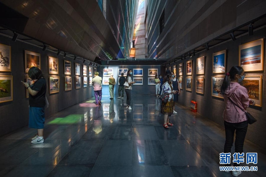 8月5日,觀眾在首屆祁連山國(guó)家公園青海片區(qū)生態(tài)藝術(shù)展欣賞展出的作品。新華網(wǎng) 齊雨萌 攝