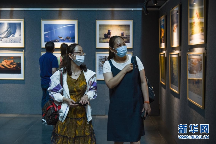 展覽現(xiàn)場(chǎng),觀眾正在觀賞影像祁連山系列作品。新華網(wǎng) 齊雨萌 攝