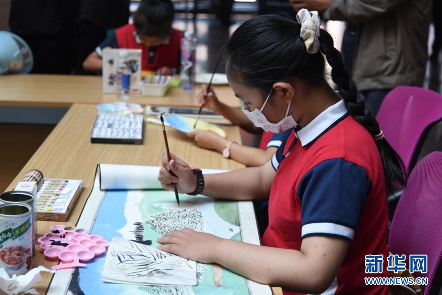 萌芽祁連山板塊現(xiàn)場(chǎng),小朋友正在作畫。新華網(wǎng) 齊雨萌 攝