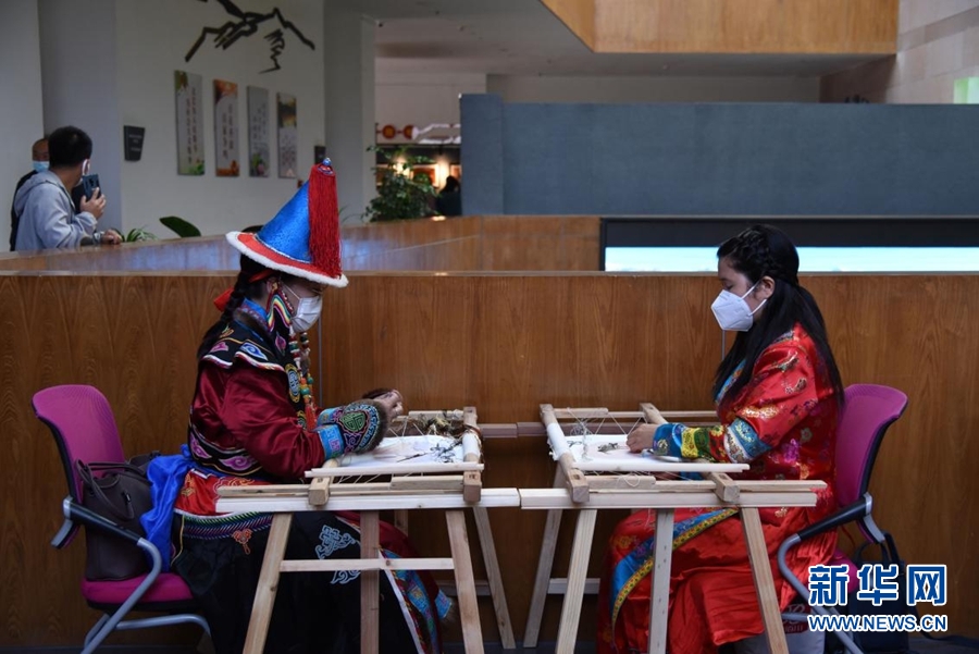非遺祁連山板塊現(xiàn)場(chǎng),海西蒙古族藏族自治州刺繡傳承人進(jìn)行非遺技藝展示。新華網(wǎng) 齊雨萌 攝