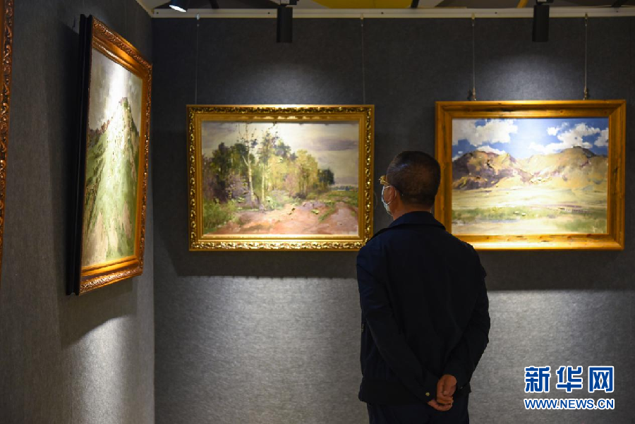 展覽現(xiàn)場(chǎng),觀眾正在欣賞展出的作品。新華網(wǎng) 齊雨萌 攝