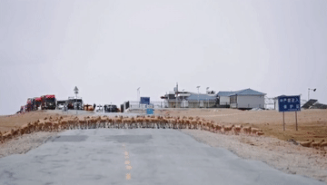 這是遷徙藏羚羊群經(jīng)過(guò)青藏公路可可西里五道梁路段。(素材由三江源國(guó)家公園管理局長(zhǎng)江源園區(qū)可可西里管理處提供)