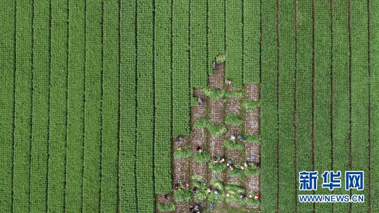 8月13日,在四川省阿壩藏族羌族自治州紅原縣刷經(jīng)寺鎮(zhèn)加當(dāng)村,當(dāng)?shù)厝罕娫谑崭罡咴n筍(無人機照片)。新華社記者 江宏景 攝