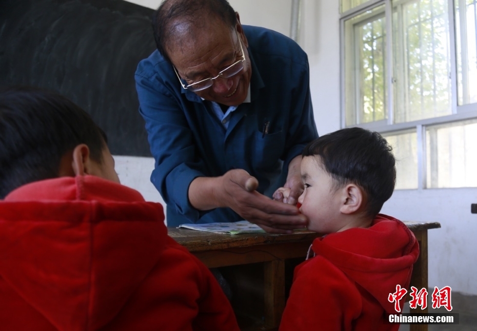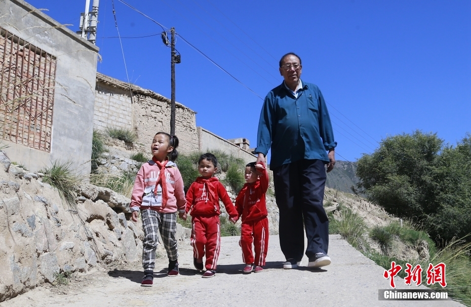 30年前他剛來學校時不會講當?shù)氐娜隼逭Z言,村民也聽不懂他說的藏語??鄬W兩年后,他便能用一口純正的撒拉語和大家溝通。中新社記者 馬銘言 攝