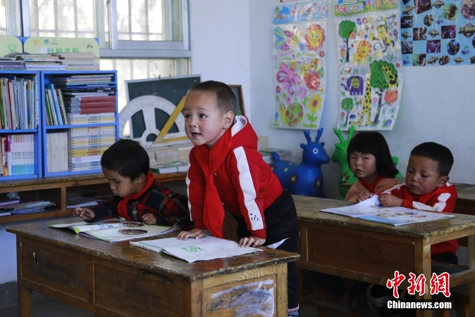 完么仁增任教后,每天早出晚歸,經(jīng)常住在學校。就這樣堅持了30多年,成為全村200多名學生的啟蒙教師。中新社記者 馬銘言 攝