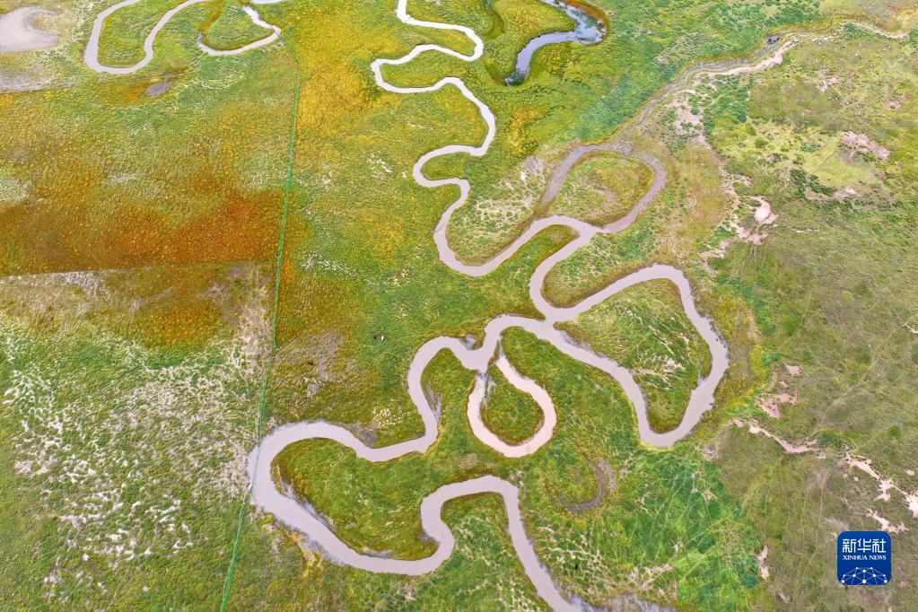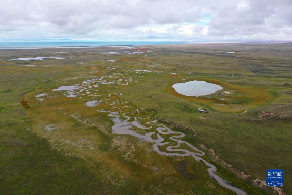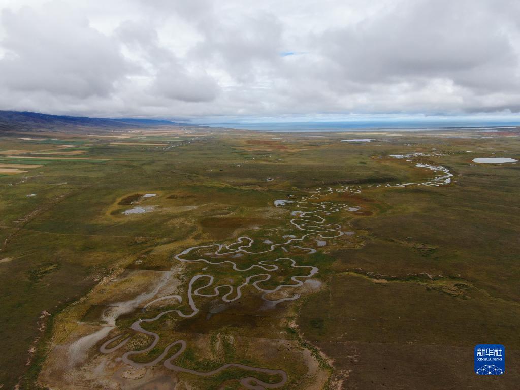 這是9月15日拍攝的青海湖畔的倒淌河(無人機照片)。新華社記者 邢廣利 攝