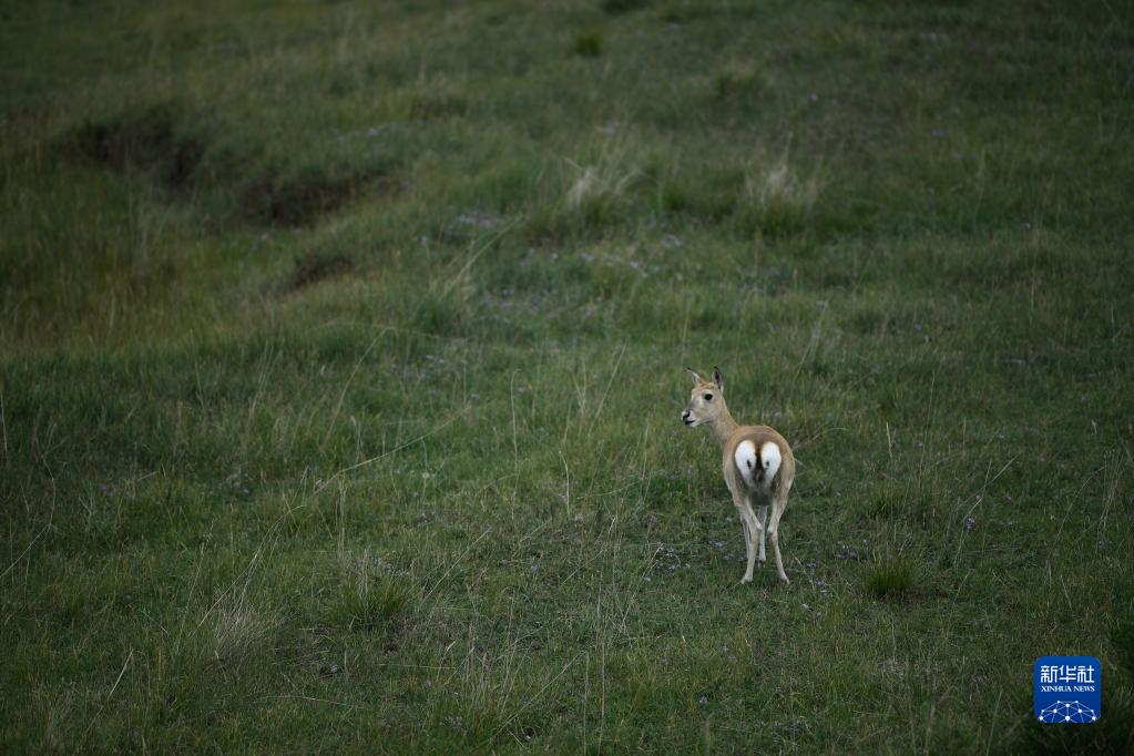 9月15日,一只普氏原羚在青海湖岸邊的牧場內(nèi)活動。新華社記者 張龍 攝