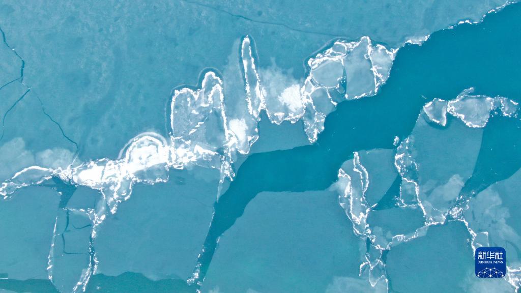 這是2020年4月20日拍攝的青海湖“開湖”景觀(無人機照片)。新華社記者 張龍 攝