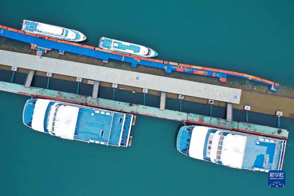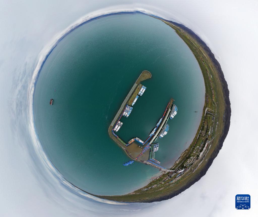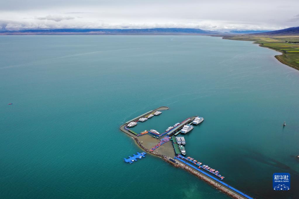 這是9月15日拍攝的青海湖上停泊的船只(無人機照片)。新華社記者 邢廣利 攝