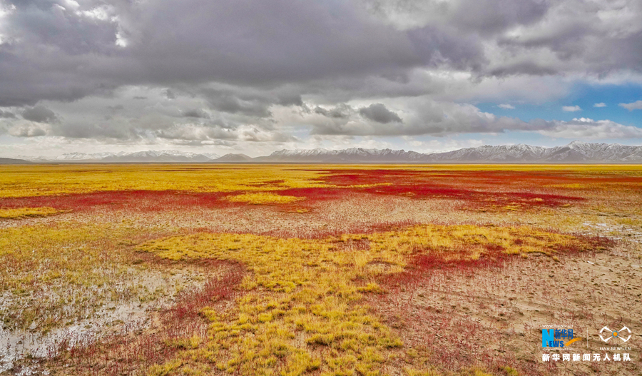 冬格措納湖位于青海省果洛藏族自治州瑪多縣境內(nèi),海拔4000米以上。秋日的冬格措納湖,湖水湛藍(lán)、天空遼闊,湖畔的草地紅綠黃交融,一幅大自然的美麗畫卷在這里展開。新華網(wǎng) 宋忠勇 攝
