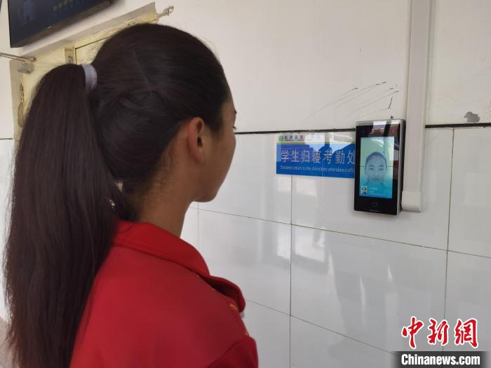 圖為學生“刷臉”歸寢考勤登記。張婧 攝