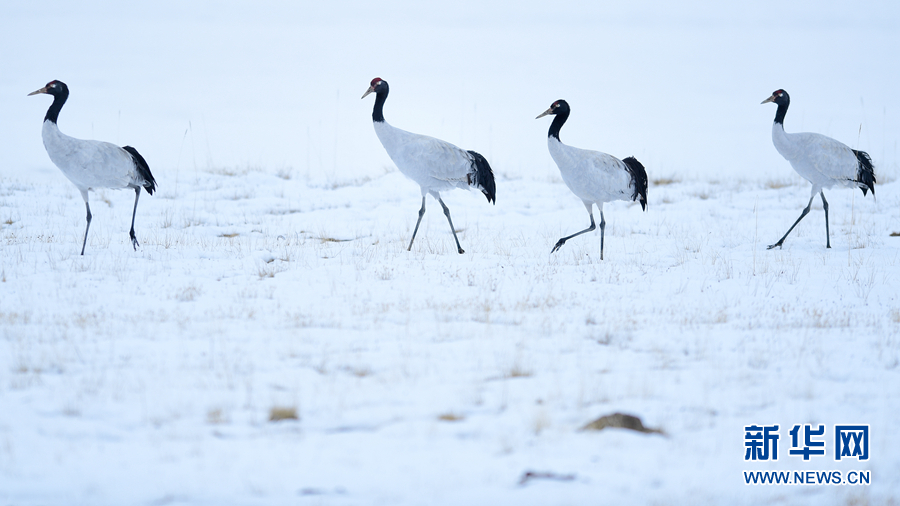 10月21日在三江源國家公園黃河源園區(qū)內(nèi)拍攝的黑頸鶴。新華社記者 張龍 攝